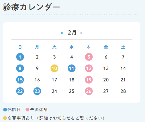 2/10(火)の午後は、15:00~18:00に診療時間が変更となります。